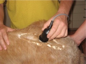 Behandelt wird vorwiegend mit 1 Mhz bzw. 3 Mhz. Der Unterschied bei den verschiedenen Frequenzen liegt in der Eindringtiefe. 1 Mhz dringt tiefer ins Gewebe und wird besonders für die Behandlung von tieferen Gewebestrukturen wie Knochenhaut, Knorpel und Sehnen eingesetzt. 3 Mhz wird eher bei der Beschallung von Haut und hautnahen Geweben eingesetzt, wie z. B. bei der Narbenbehandlung. Das Ankopplungsmedium z. b. Gel auf das Behandlungsgebiet auftragen. Man geht mit kleinen, kreisenden Bewegungen z. b. über den Gelenkspalt und das umliegende Gewebe.
